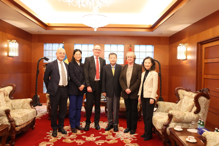 2026年3月24日,中国驻瑞典使馆商务参赞康文陪同周立民大使会见瑞典-中国贸易委员会主席佩尔松等董事会成员。双方围绕中瑞、中欧经贸关系等议题进行友好交流。使馆负责经济商务事务的参赞康文参加会见。