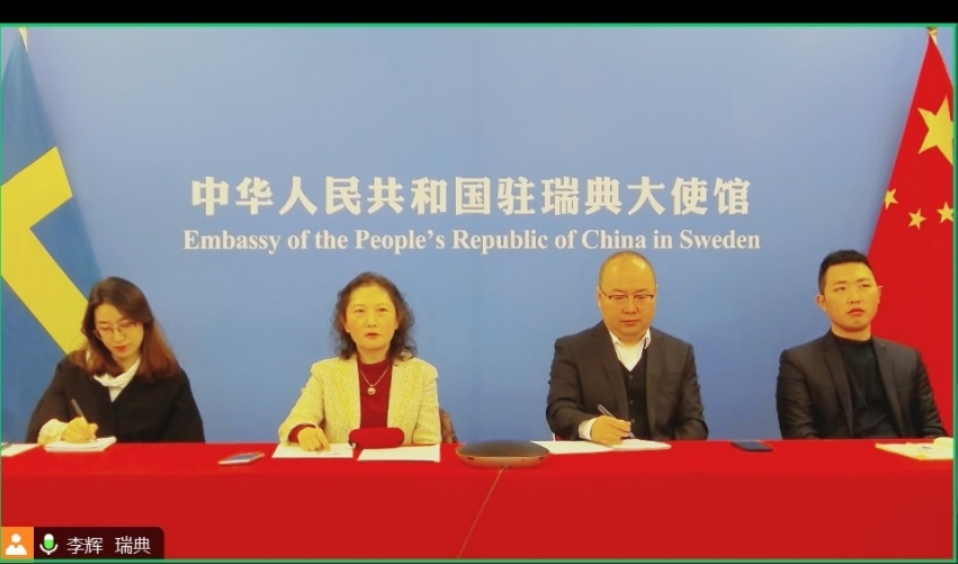康文参赞视频会见中国瑞典商会总经理丹林